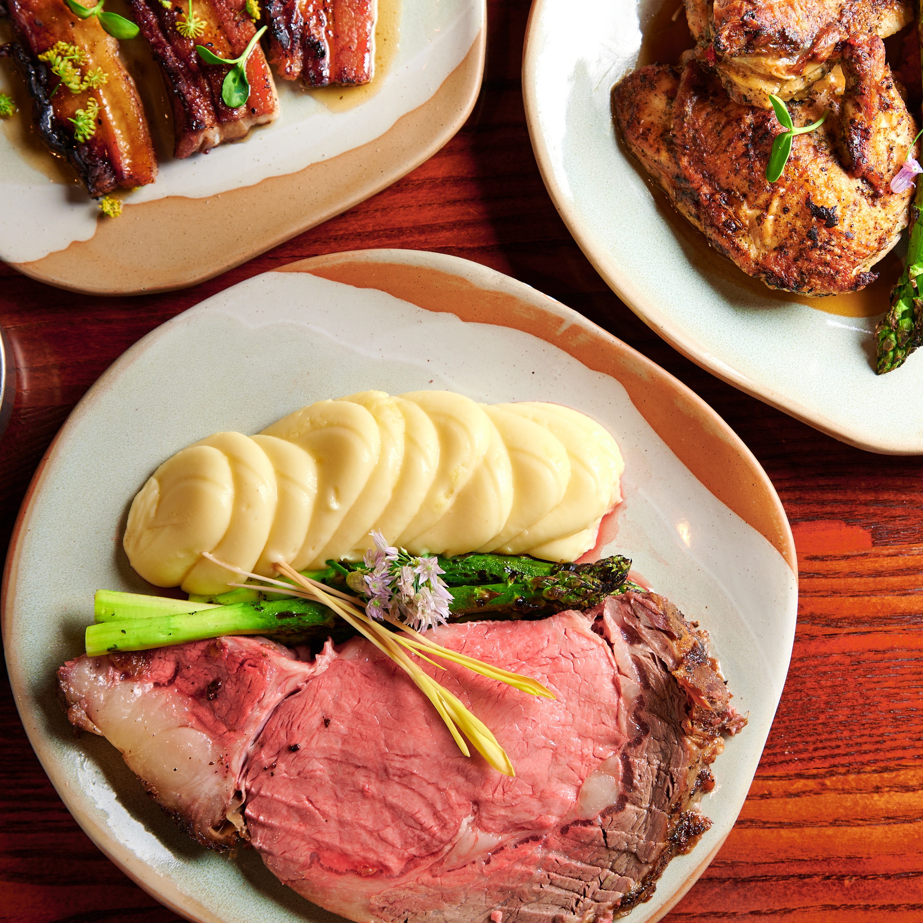 The bright acidity of heirloom cherry tomatoes balances the richness of the meat, while broccoli greens add depth of flavor. A Calabrian chili butter adds a touch of heat, while sunchoke chips provide a satisfying crunch.