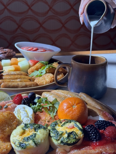 This bountiful buffet is the perfect way to start your day in a bright and airy oasis.