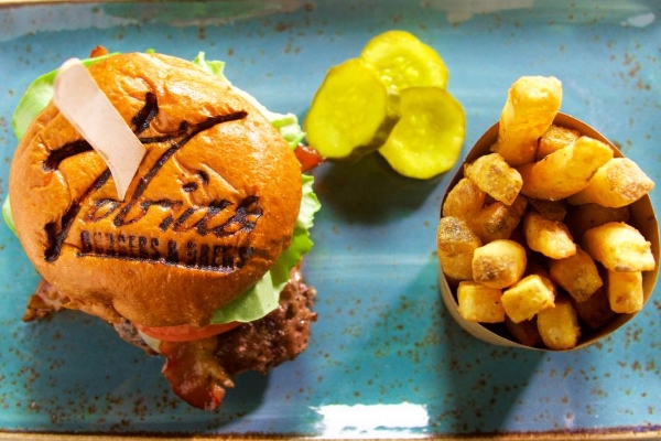 Burgers and sandwiches await hungry diners, perfectly paired with another round of cold, refreshing drinks.